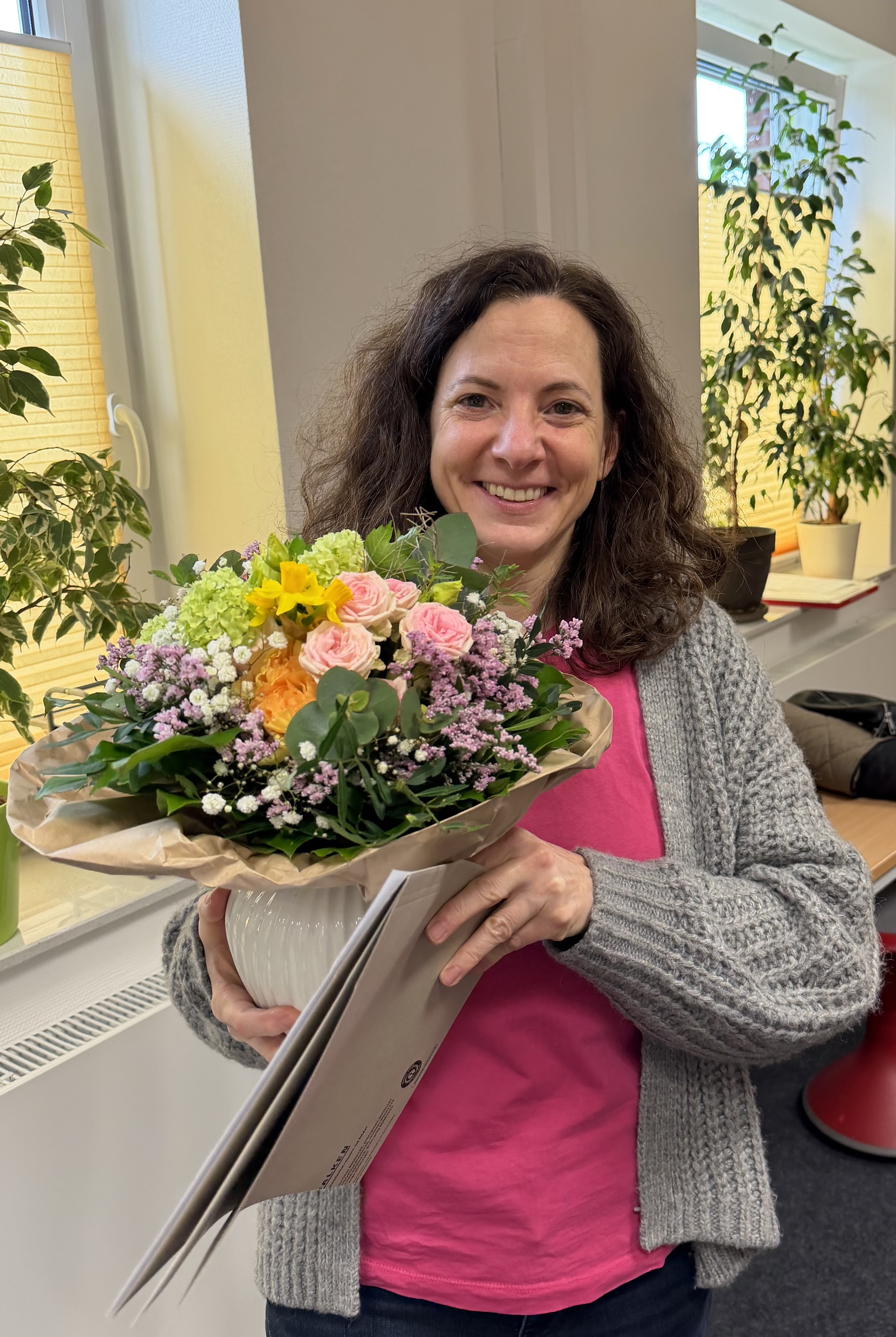 Strahlend nahm Frau Knospe die Urkunde und die Blumen zum Dienstjubiläum entgegen. |