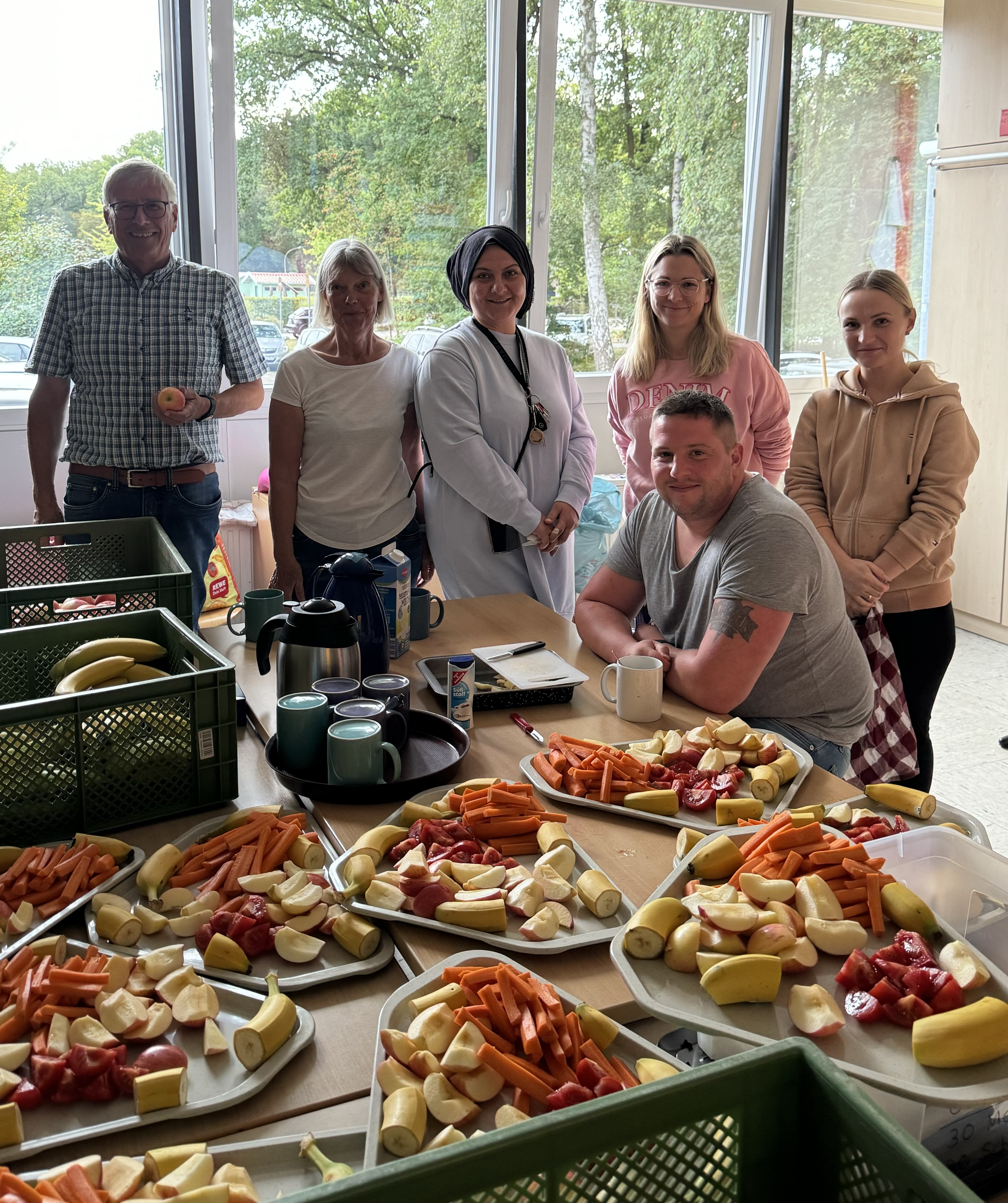 Es gab für alle Beteiligten die größte Belohnung, die man bekommen kann: Strahlende Kinderaugen! Unsere Schnippel-Eltern und -Großeltern haben heute erstmals für jede Klassen ein Tablett mit einem kleinen, gesunden Frühstück zubereitet. Danach ging es zur persönlichen Auslieferung in die Klassen, in denen die Freude groß war. Ruckzuck waren die Tabletts leer ... Nebenbei gab es hier und da ein großes Hallo: "Hallo Oma!", "Das ist mein Opa!" ... In der kleinen, illustren Schnippel-Runde - die sich von nun an jeden Dienstag in der Schulküche trifft - wurde natürlich nicht nur geschnippelt, sondern auch nett geklönt. Die Schule als Ort der Begegnung ... einfach schön. DANKE liebe Schnippel-Gruppe! Die Kinderaugen strahlen ... immer noch!