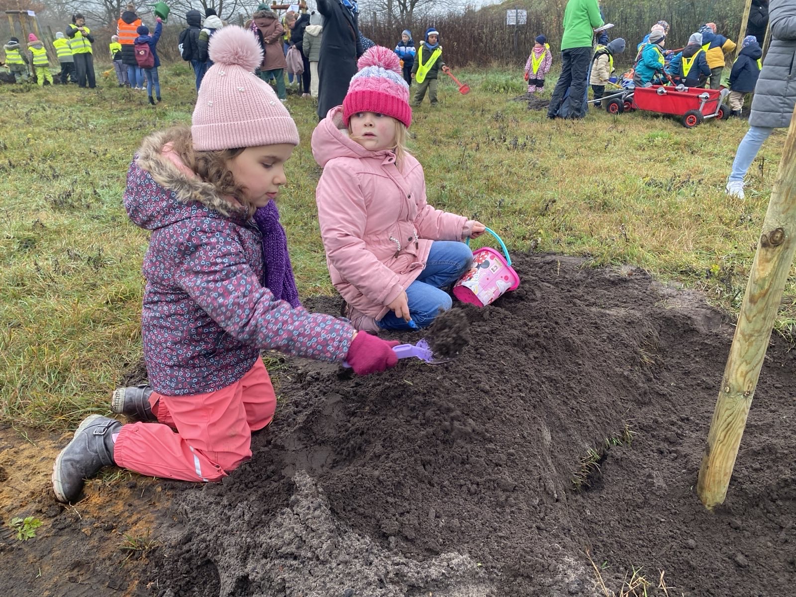 Vollen Einsatz beim Pflanzen der Bäume zeigen unsere stolzen ErstklässlerInnen. |