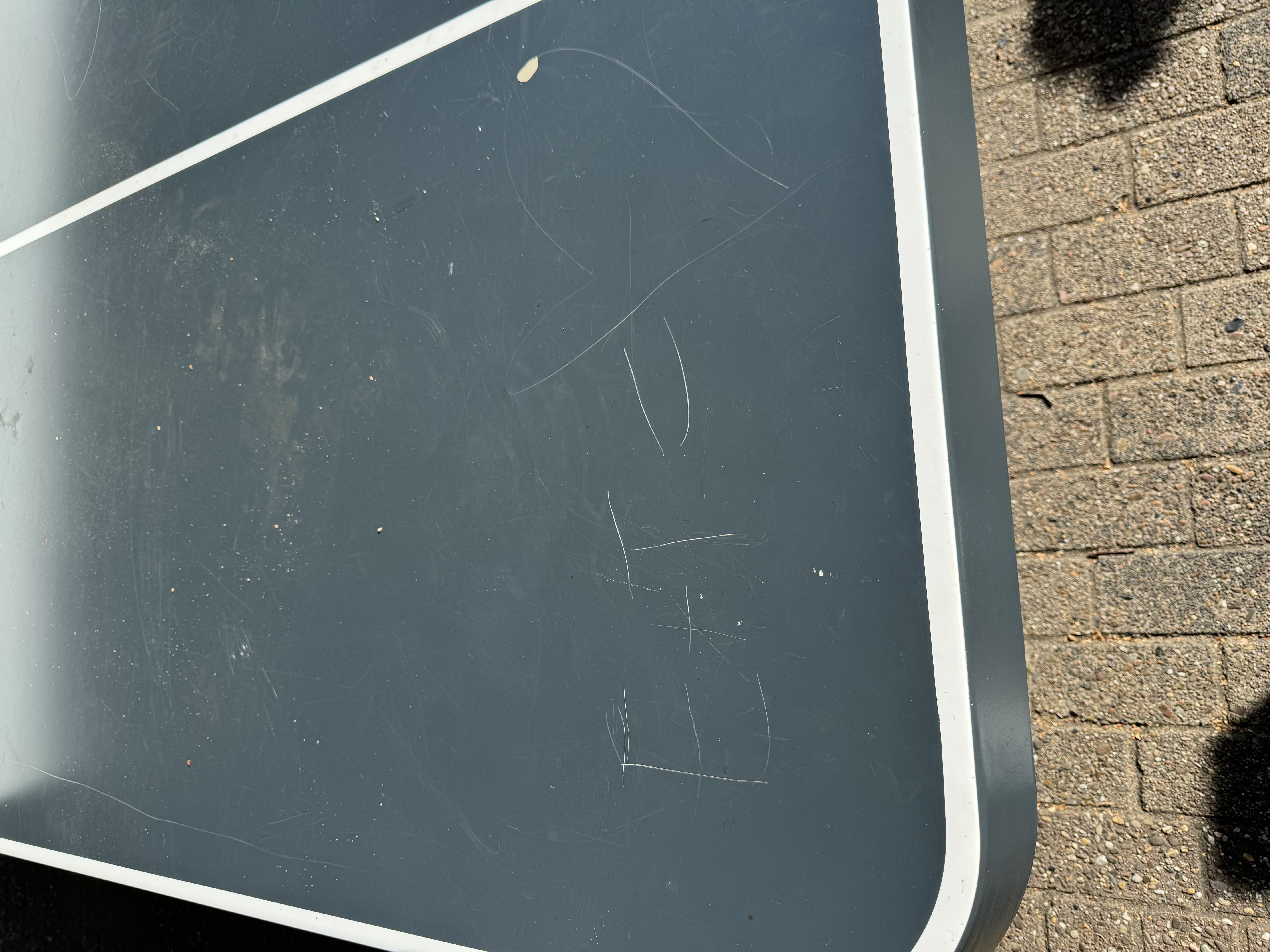 Unsere SchülerInnen haben beim letzten Sponsorenlauf ihr Bestes gegeben und viel Geld eingesammelt. Der Schülerrat hatte sich (neue) Tischtennisplatten gewünscht. Bis zum Beginn dieses Schuljahres konnten nun zwei Platten aufgestellt und schon ordentlich bespielt werden. Jetzt - nach nur sechs (!) Schultagen - war das Entsetzen groß. In den Nachmittags- und/oder Abendstunden wurden die neuen Tischtennisplatten mutwillig verkratzt. Neben einer gewissen Ohnmacht bleibt die Frage "Wer macht sowas?". Sollte jemand etwas gesehen haben, würden wir uns über eine Nachricht freuen ... |